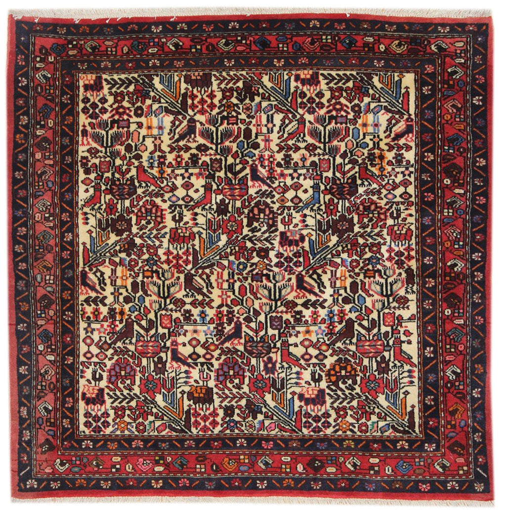 Vintage Circa 1950 Nomadic Persian & Turkish Tribal Persian Tafresh 4' 2" X 4' 3" Ivory Rug