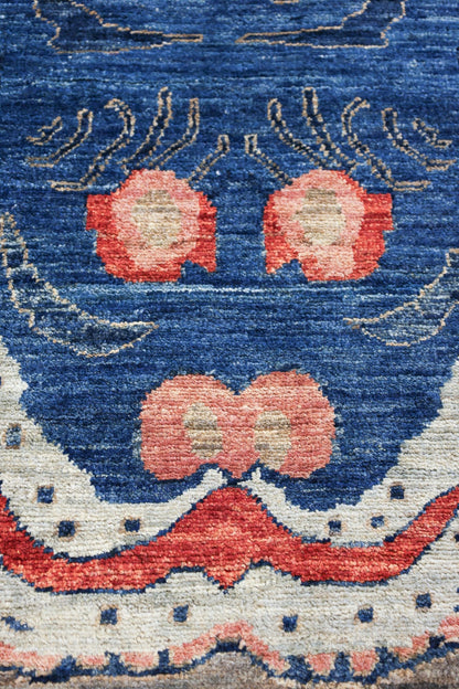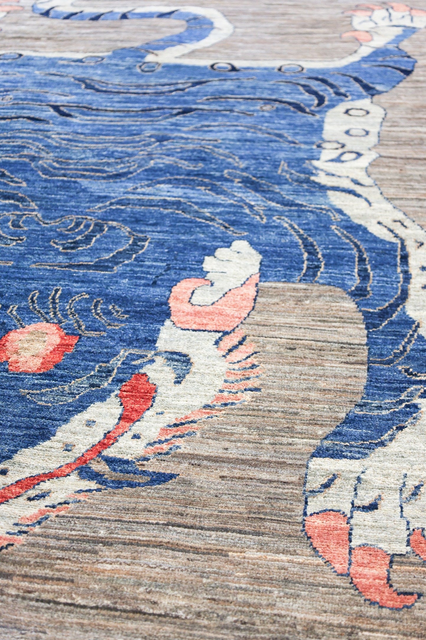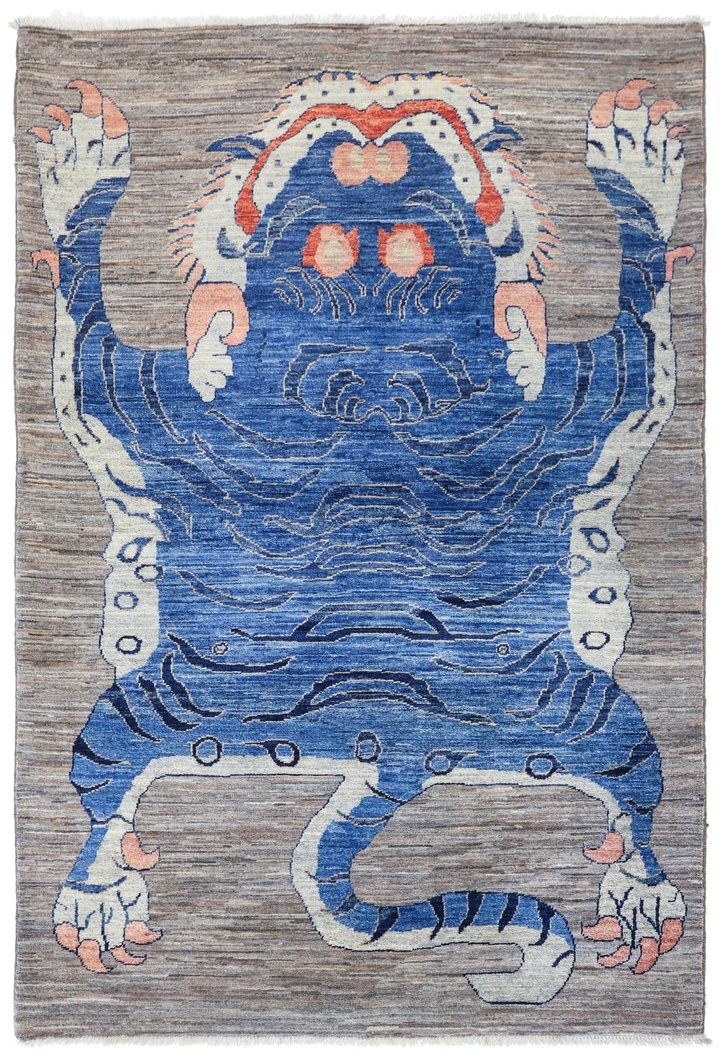 New Pictorial Contemporary Afghani Tiger King 4' 1" X 6' 0" Blue Rug
