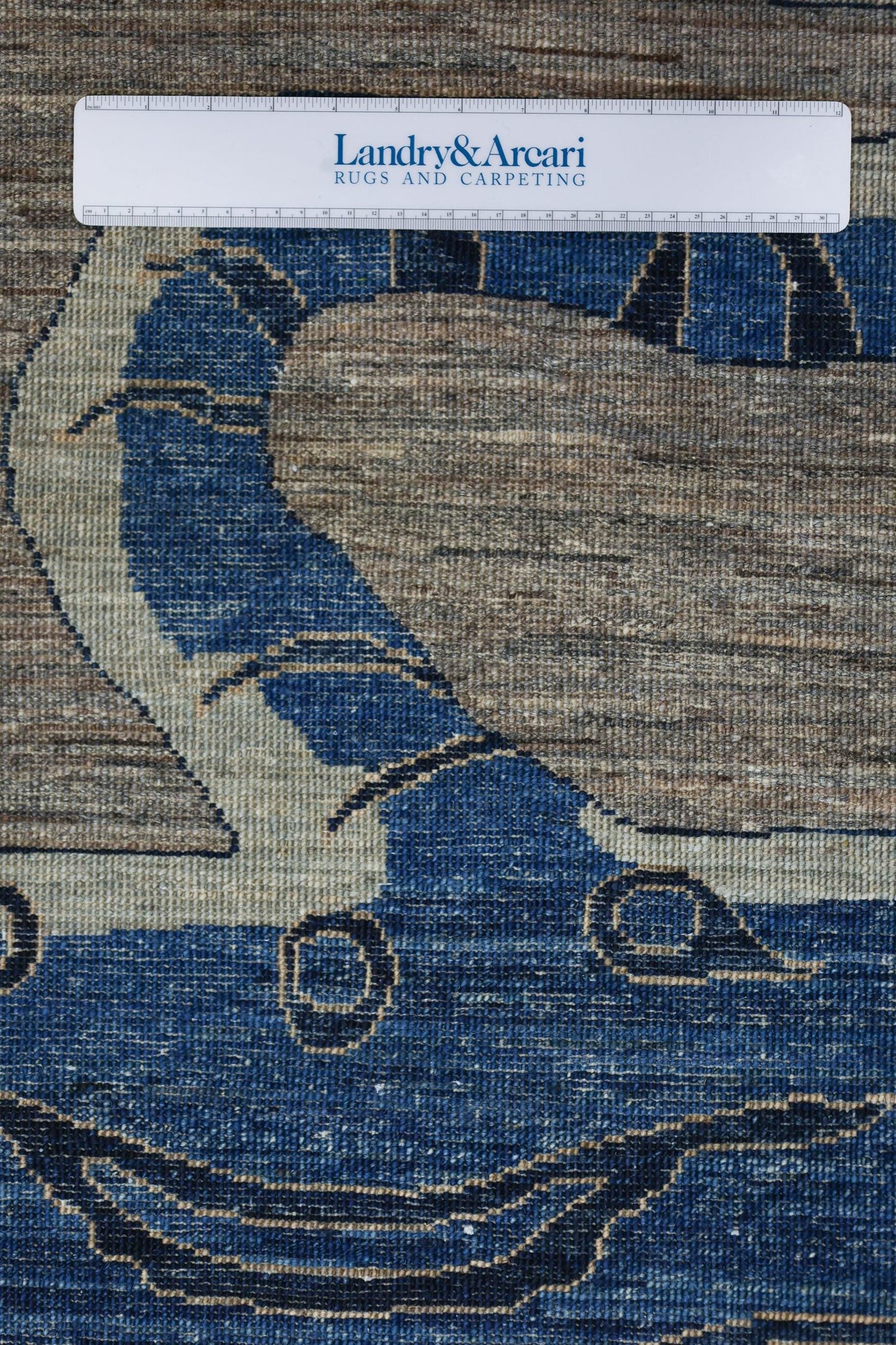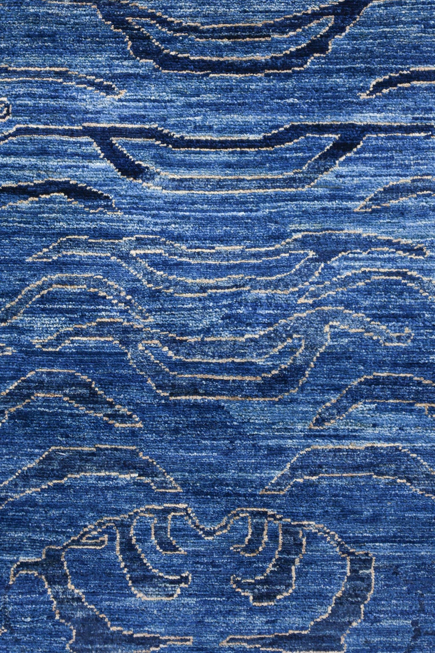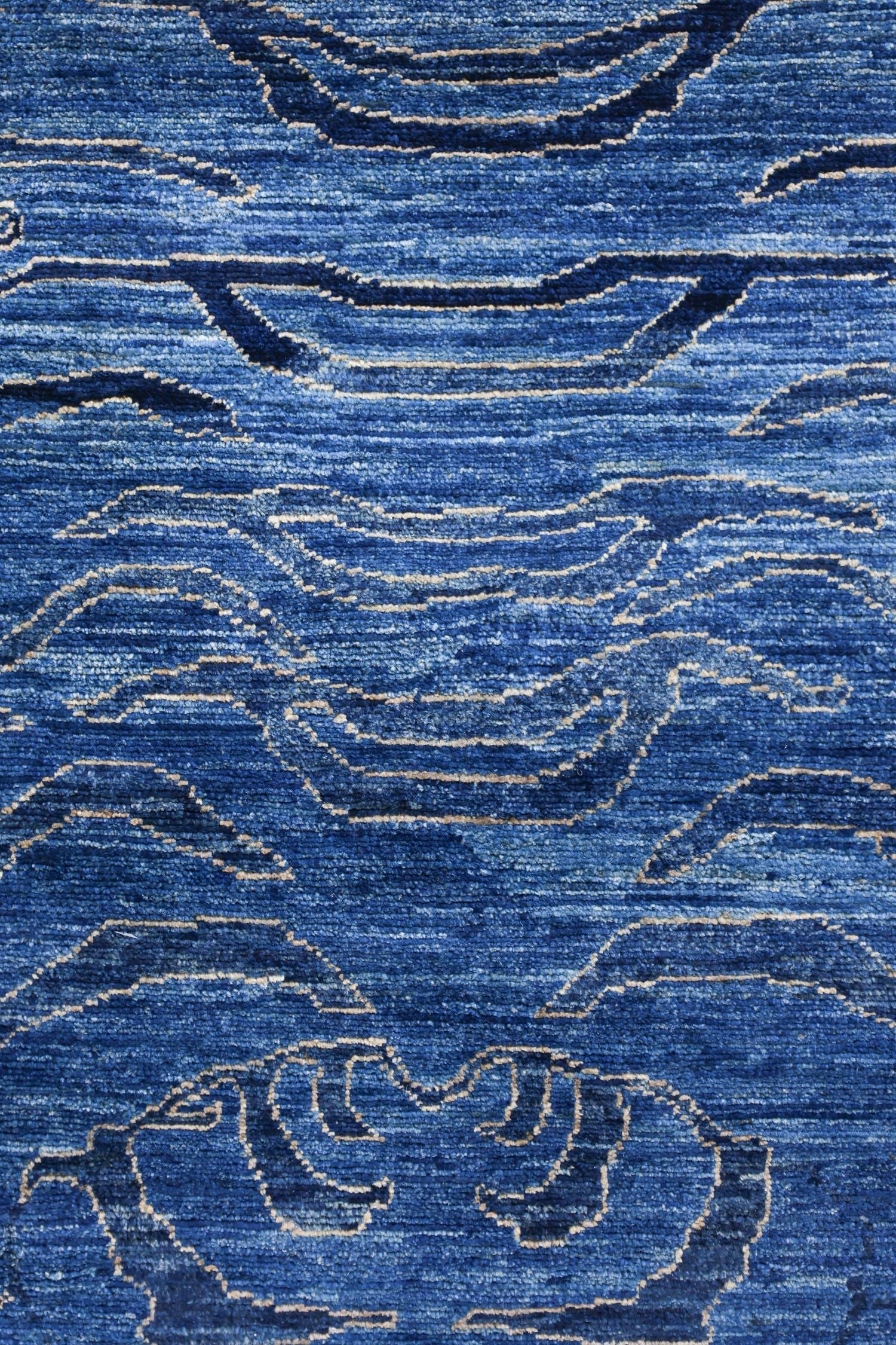 New Pictorial Contemporary Afghani Tiger King 4' 1" X 6' 0" Blue Rug