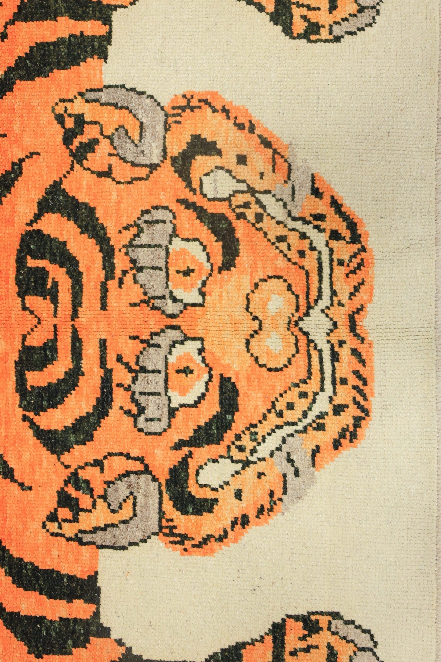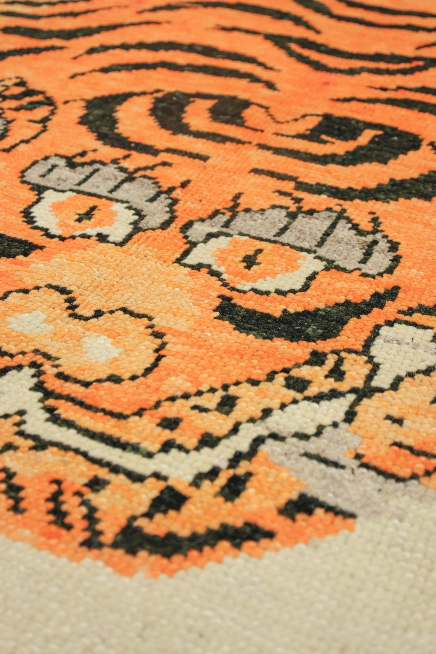 New Pictorial Contemporary Turkish Tiger Oushak 5' 9" X 8' 1" Orange Rug