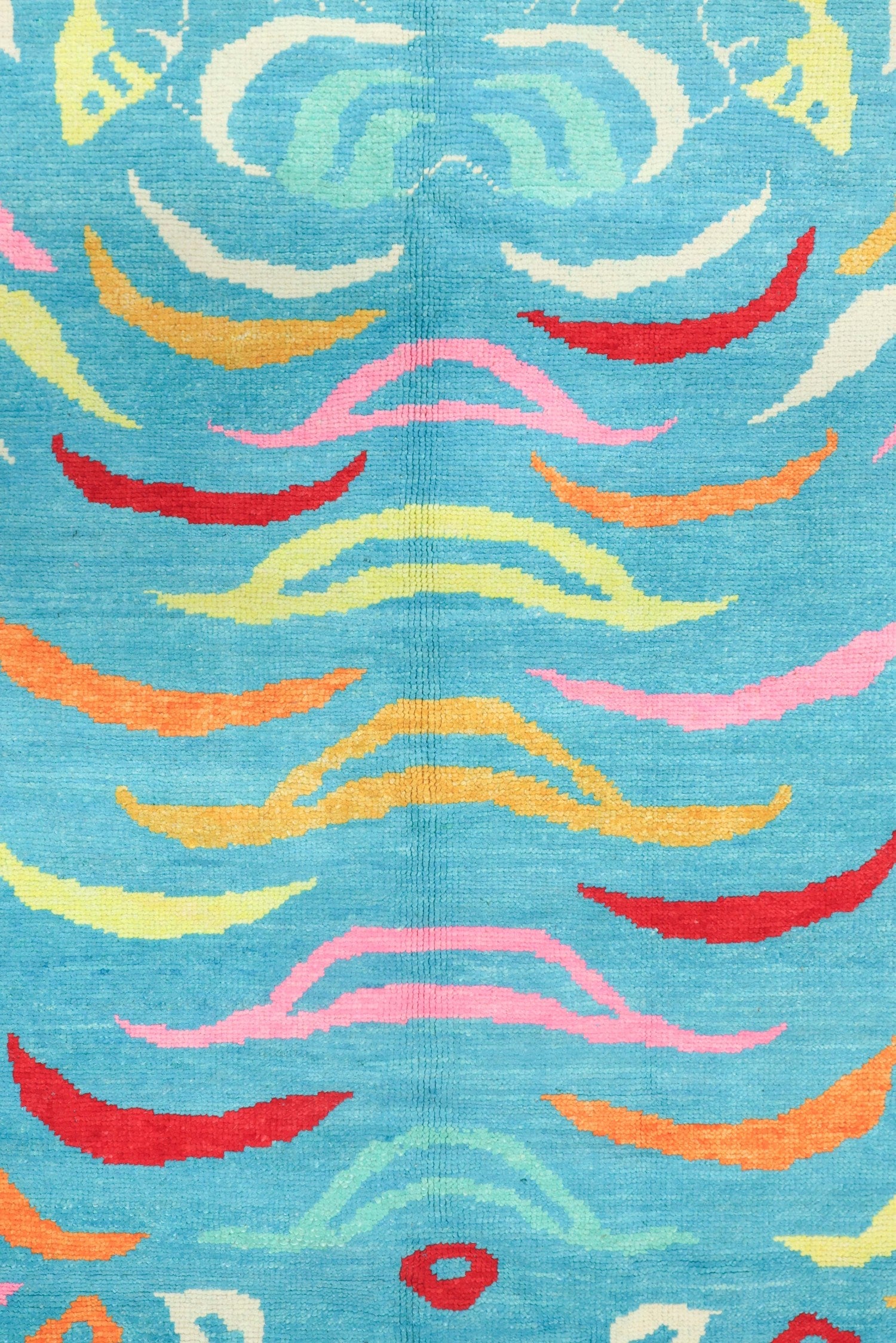 New Pictorial Contemporary Turkish Tiger Oushak 6' 10" X 9' 9" Blue Rug