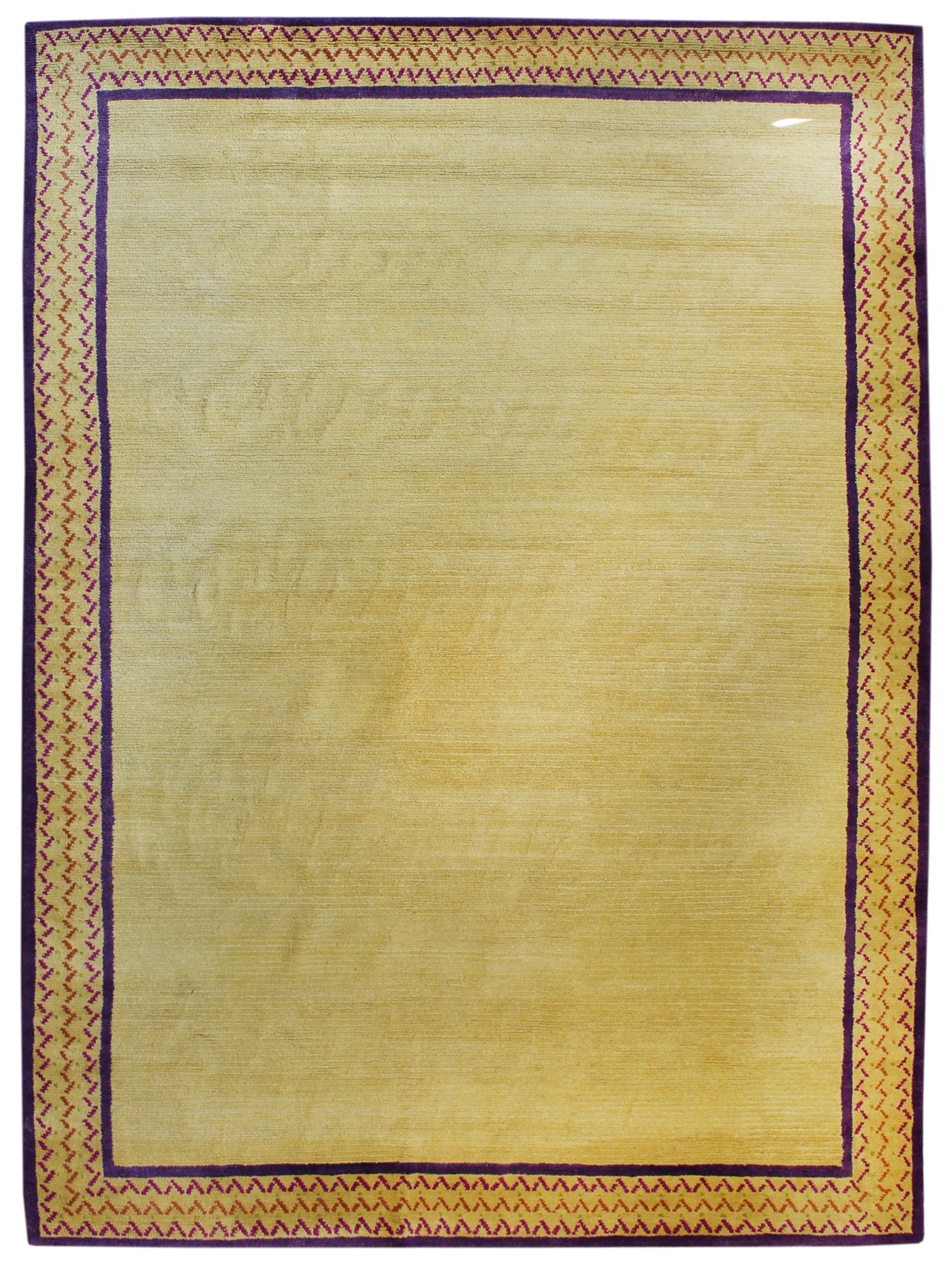 Get ready to fall in love with our Tracks Handwoven Contemporary Rug (60774)! This contemporary Simple piece is yellow with grape accents. The Tracks design and 8' 11" X 12' 0" size make this new handwoven Nepalese rug a gorgeous addition to any space. Its wool pile surface on a cotton foundation means this rug is incredibly durable — you’ll be able to cherish it for years to come. Get your Tracks Handwoven Contemporary Rug today!