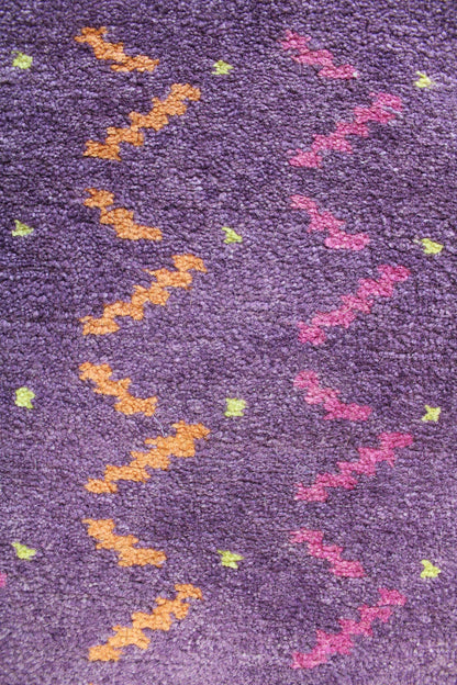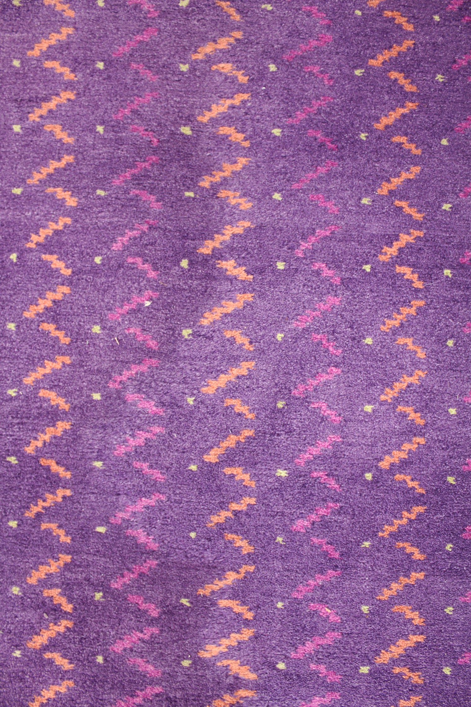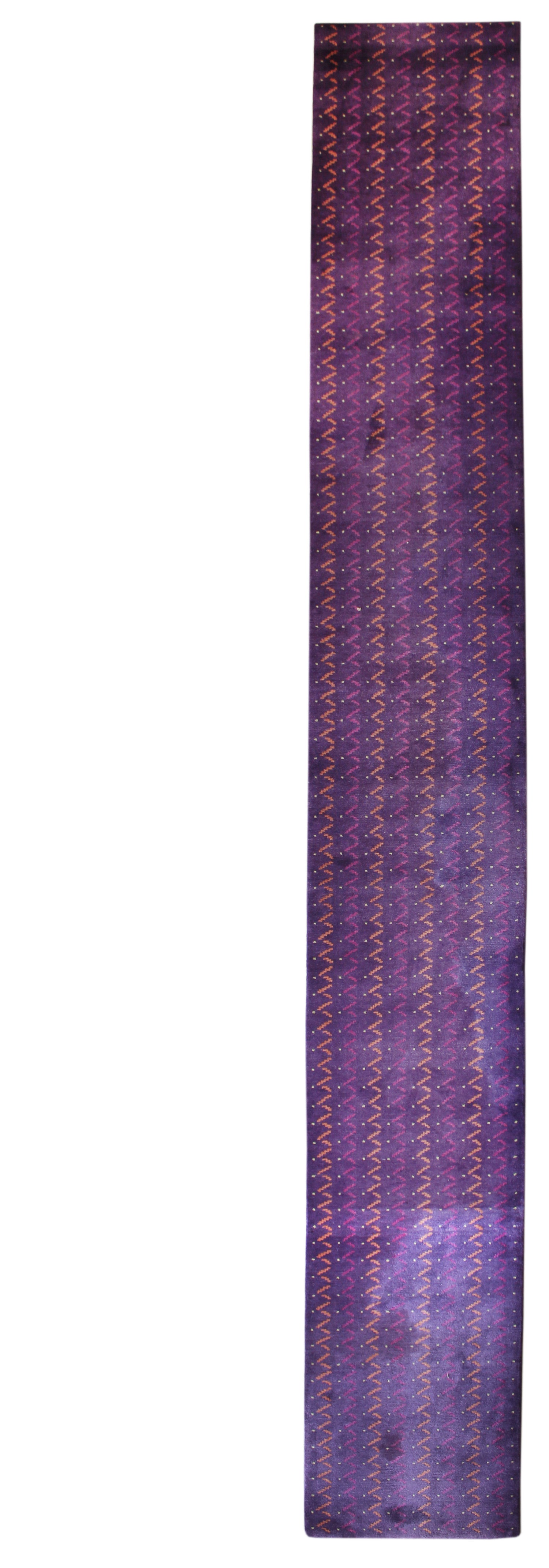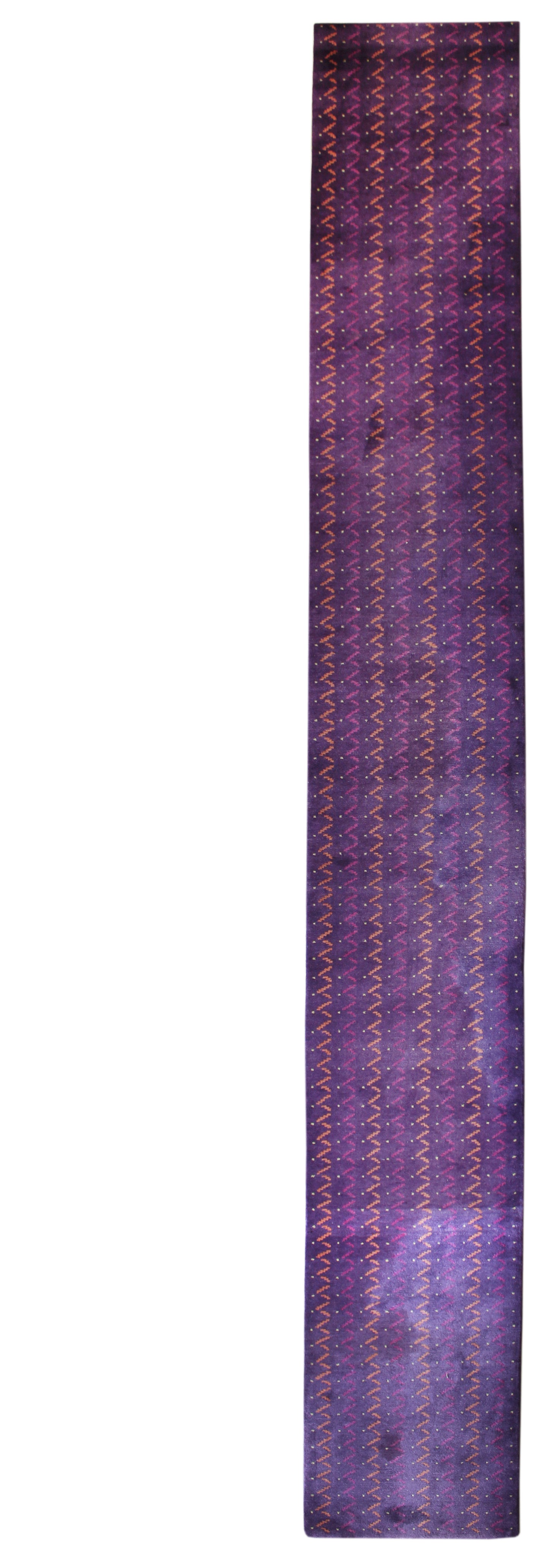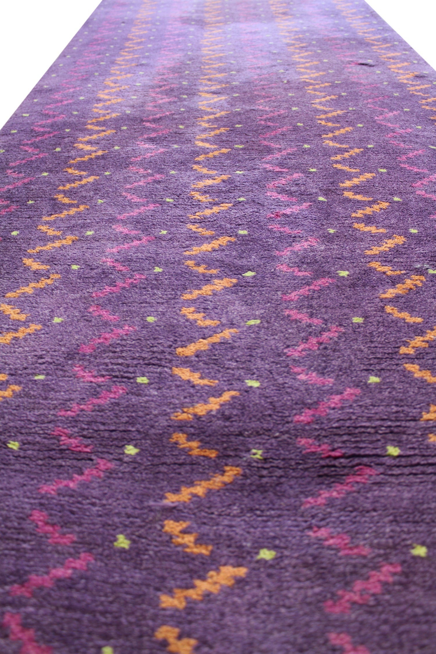 Get ready to fall in love with our Tracks Handwoven Contemporary Rug (60775)! This contemporary Simple piece is purple on grape with orange accents. The Tracks design and 2' 9" X 20' 0" size make this new handwoven Nepalese rug a gorgeous addition to any space. Its wool pile surface on a cotton foundation means this rug is incredibly durable — you’ll be able to cherish it for years to come. Get your Tracks Handwoven Contemporary Rug today!