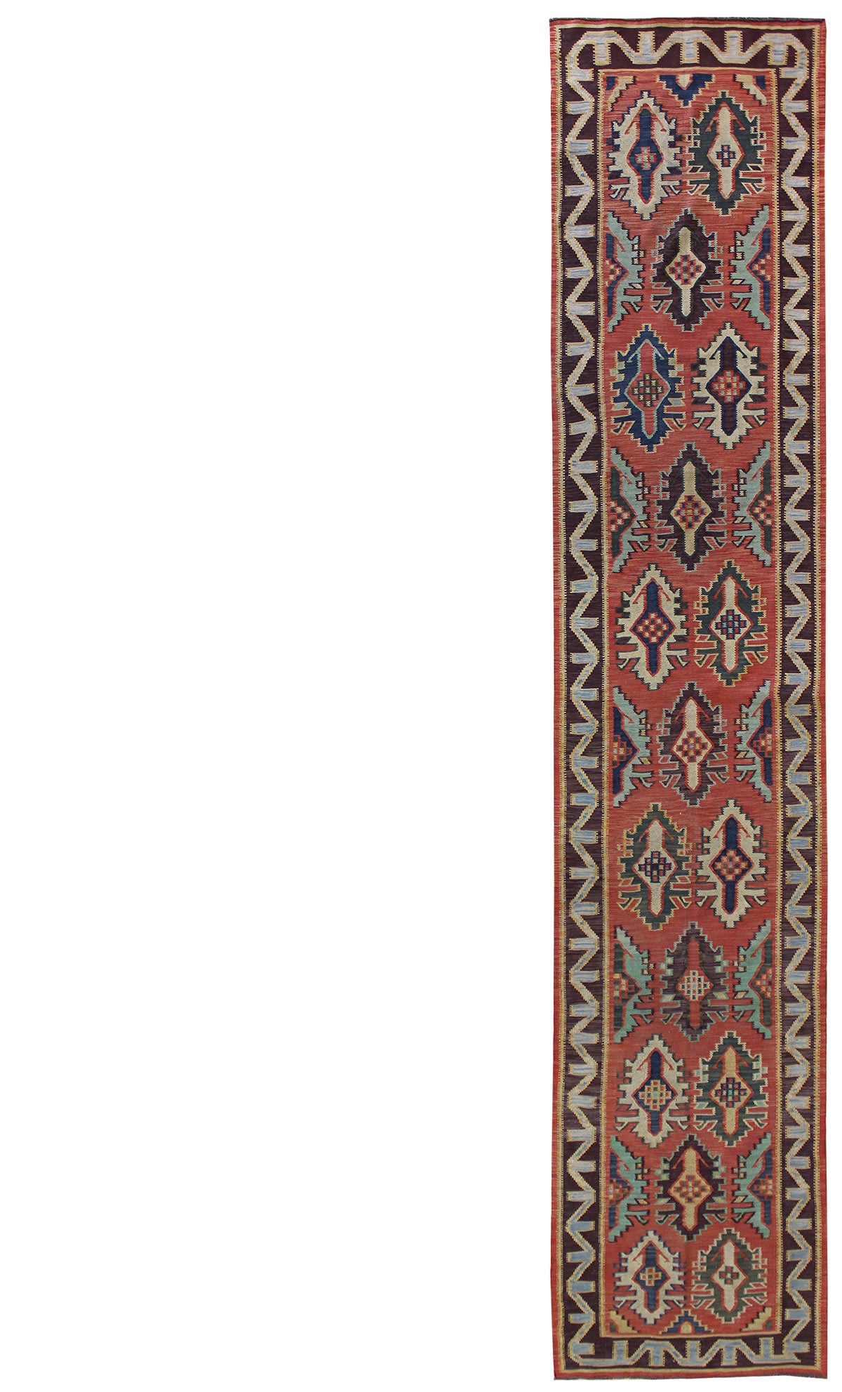 Opt for opulence and establish your signature style with the striking Tribal Handwoven Tribal Rug (J49221). As a 4' 2" X 18' 11" rug that's tribal and kilim in style, you know that this piece can instantly tie the look of your space together. The rug's tribal design will effortlessly complement and elevate your home's interior. Better still, the red, rust and plum will flatter any décor. This new handwoven Afghani rug is constructed of wool flatweave and a cottonfoundation, so it’ll not only look outstanding and perfect in your home — it’ll last for generations. Bring home your Tribal Handwoven Tribal Rug today!