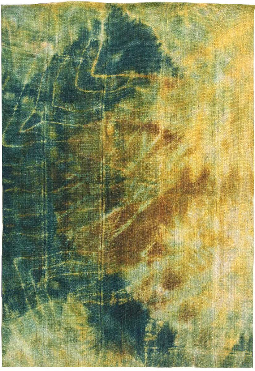 Make a grand statement in your home with our stunning Tyedye Handwoven Contemporary Rug (J37567). This contemporary handwoven Pakistani rug has an alluring Modern Abstract style with its Tyedye design in rich hues of green, teal and brown. Wool flatweave on a cotton foundation make this new rug both sturdy and comfortable to the touch. At 5' 3" X 7' 3" in size, this rug will add just the right amount of pizzazz to any room. All in, you’ll be loving this rug today, tomorrow, and beyond. So, go ahead — get your Tyedye Handwoven Contemporary Rug today!
