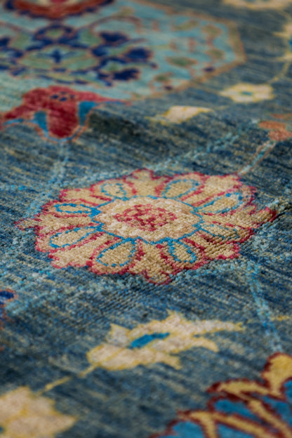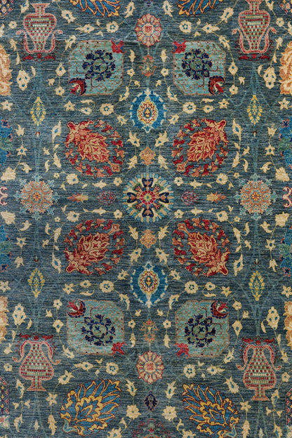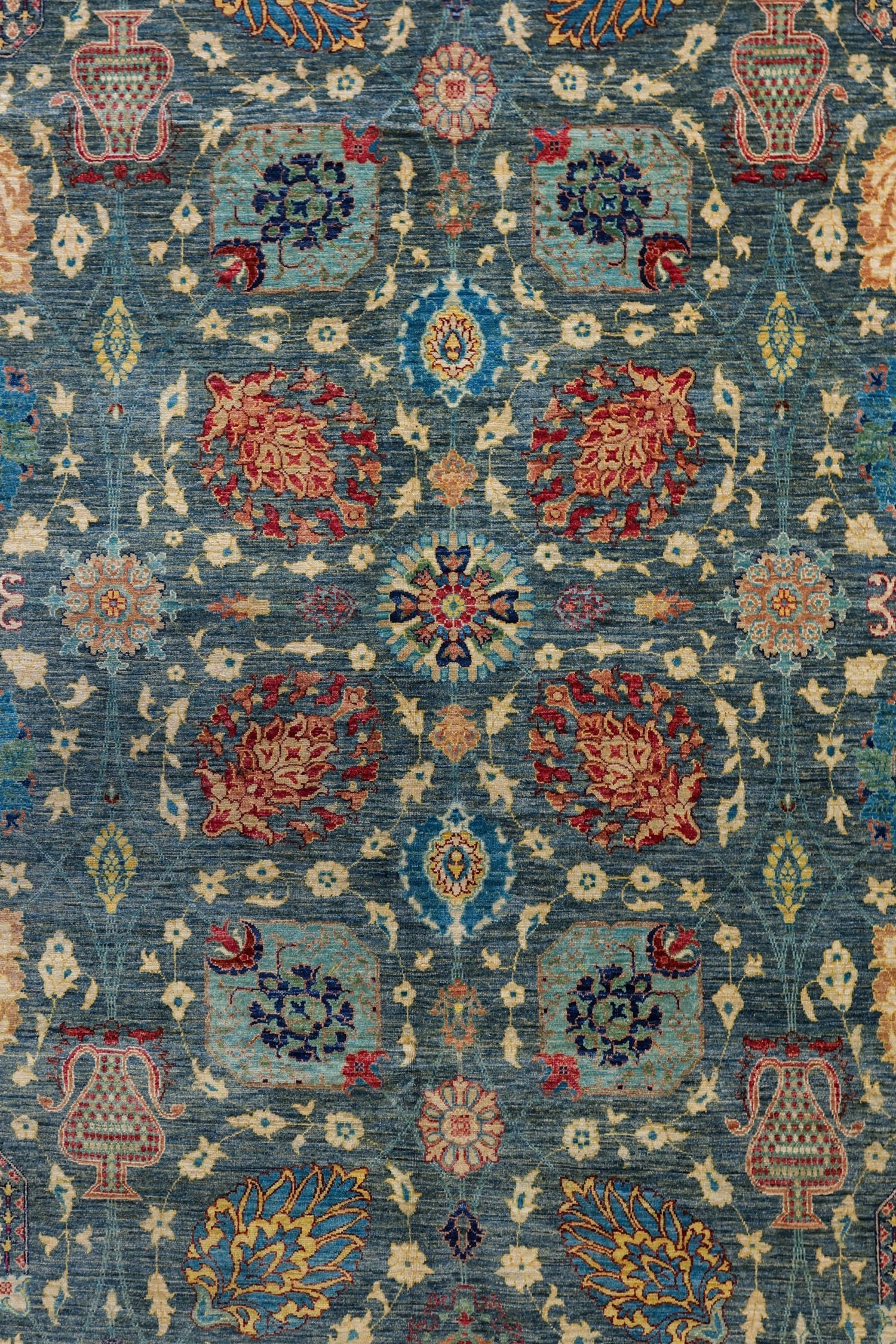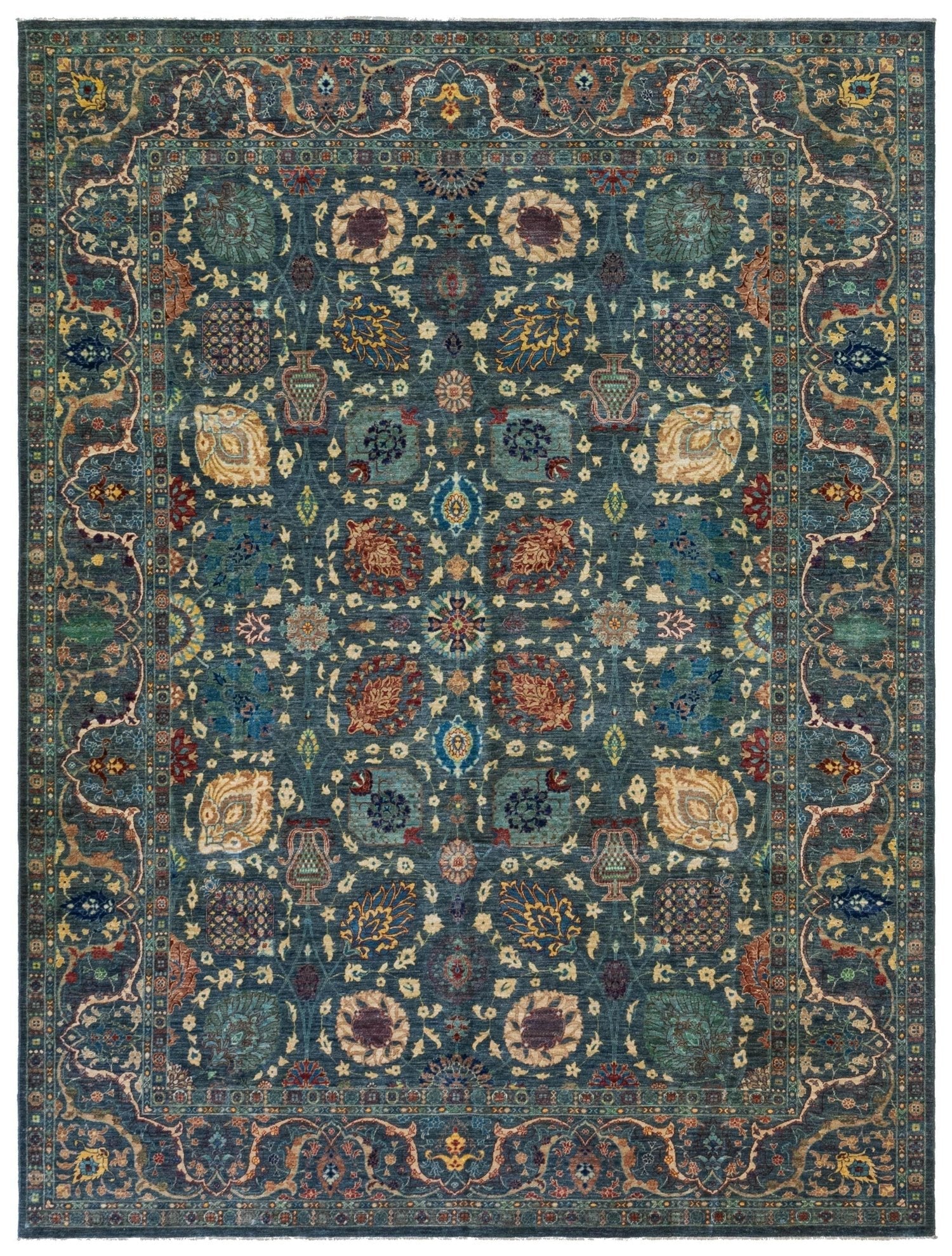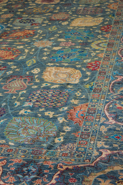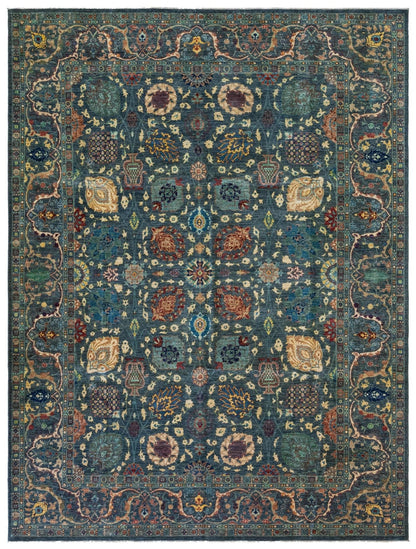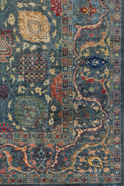 New Tribal Afghani Vase Tabriz 9' 0" X 12' 2" Blue Rug