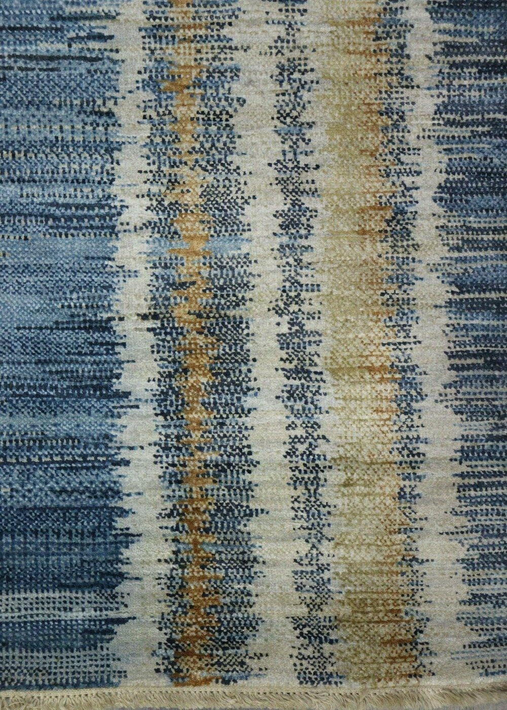 Make your house truly feel like home with our Wide Stripe Handwoven Contemporary Rug (J68037). It's new and contemporary. It’s blue on navy with copper accent colors. It’s a Simple style rug with a Wide Stripe motif. All things you gravitate towards when it comes to aesthetics and design in your space. Being a 8' 0" X 10' 0" rug of wool & silk pile on a cotton foundation, you can rest assured that this piece will do more than just make the visual impact and create the vibe you want. It comes from the fine Indian tradition of handwoven rugmaking, meaning this rug will serve you well and look terrific for years. Add that extra special personal touch today with your own Wide Stripe Handwoven Contemporary Rug.