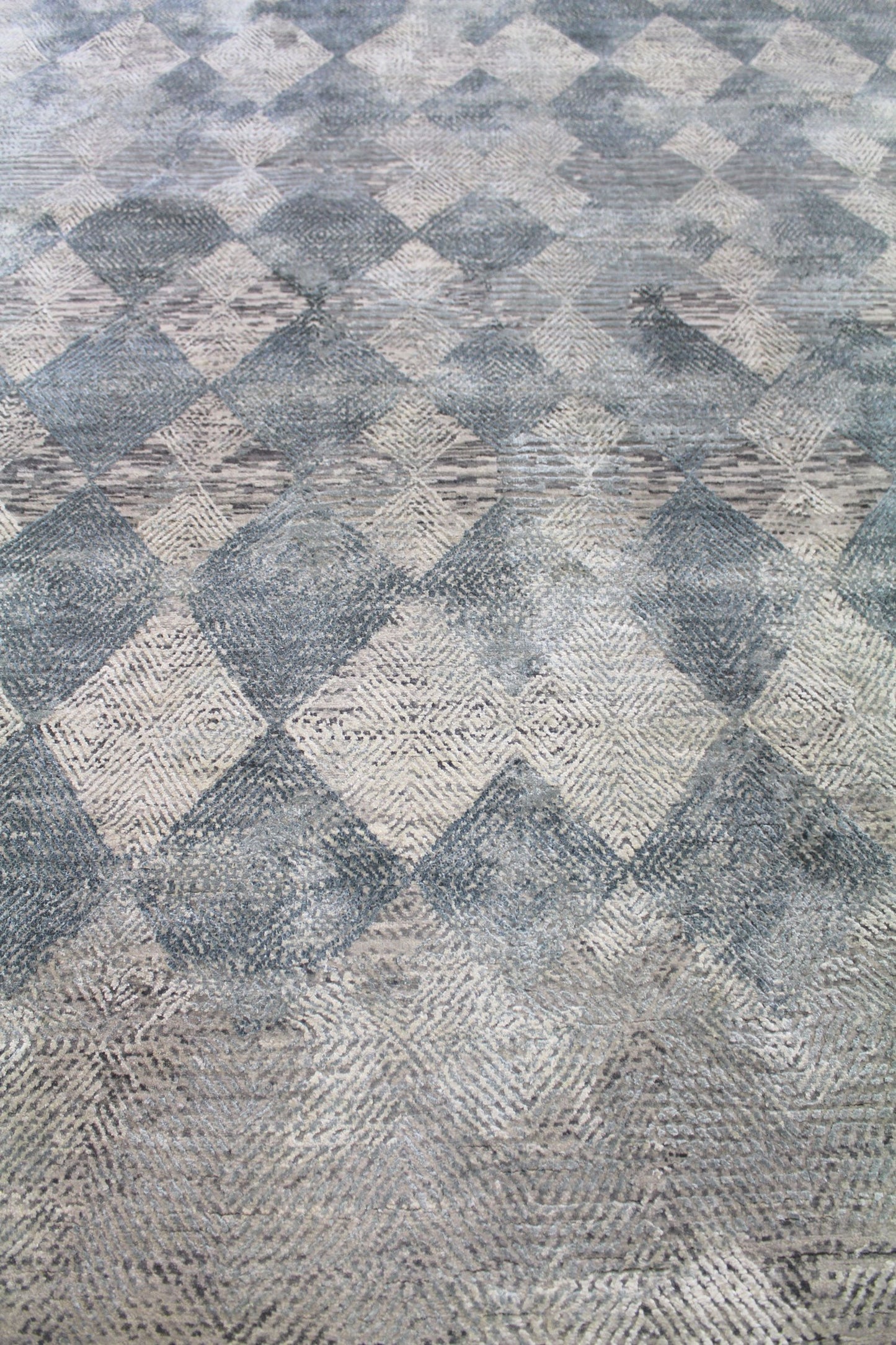 One of the fastest and easiest ways to breathe new life into your home’s décor is to add a stunning floor covering, like our Indian Woven Diamond Handwoven Contemporary Rug (J62184). This contemporary Bold Geometry piece is blue on slate with silver accents. This new handwoven rug features a Woven Diamond design motif, crafted in durable wool & silk pile on a cotton foundation. Plus, its size — 6' 1" X 9' 0" — will provide ample coverage. This means years of comfort, style, and enjoyment for you and your loved ones. Take the next step and get your Woven Diamond Handwoven Contemporary Rug right now.