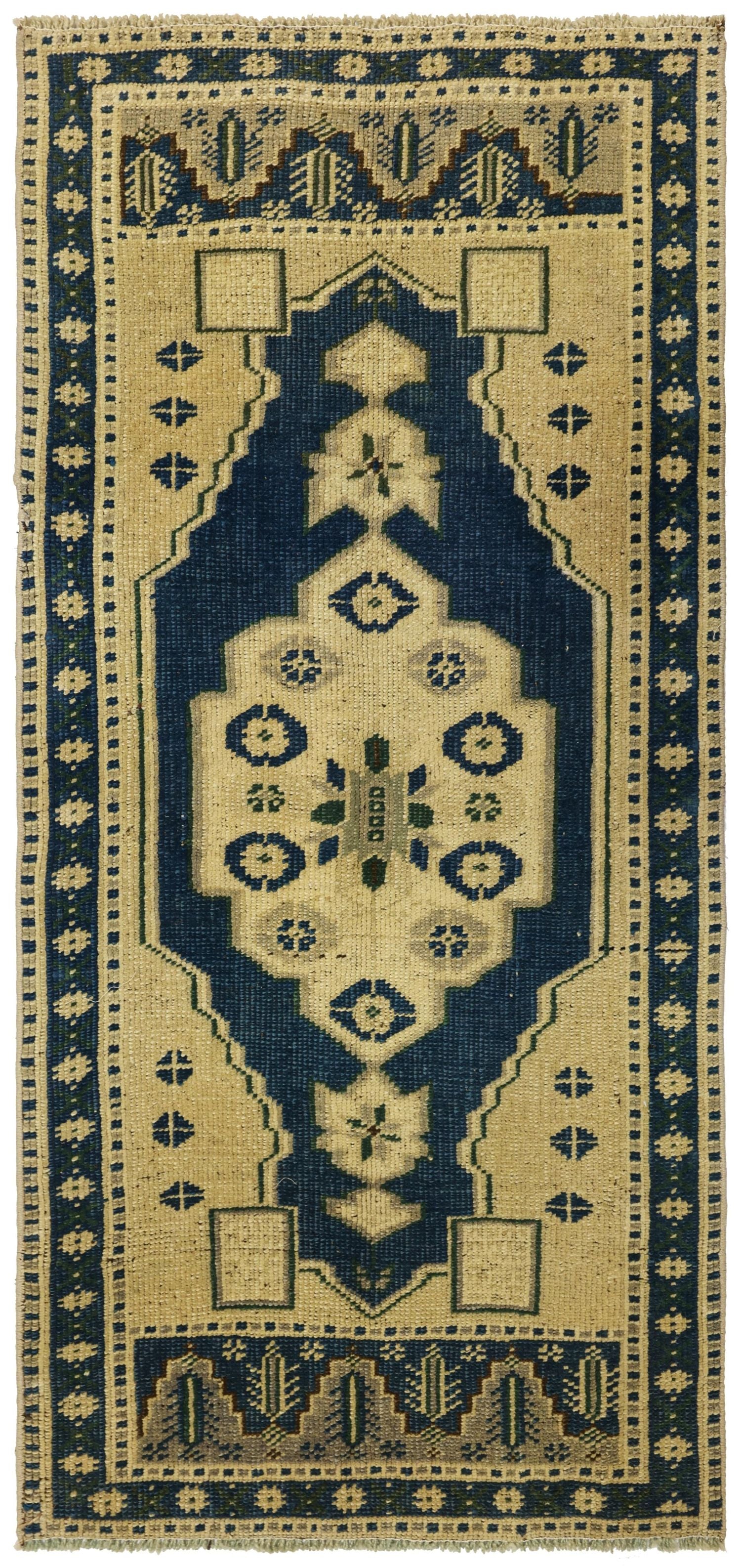 Vintage Tribal Turkish Yastik 1' 11" X 4' 2" Blue Rug