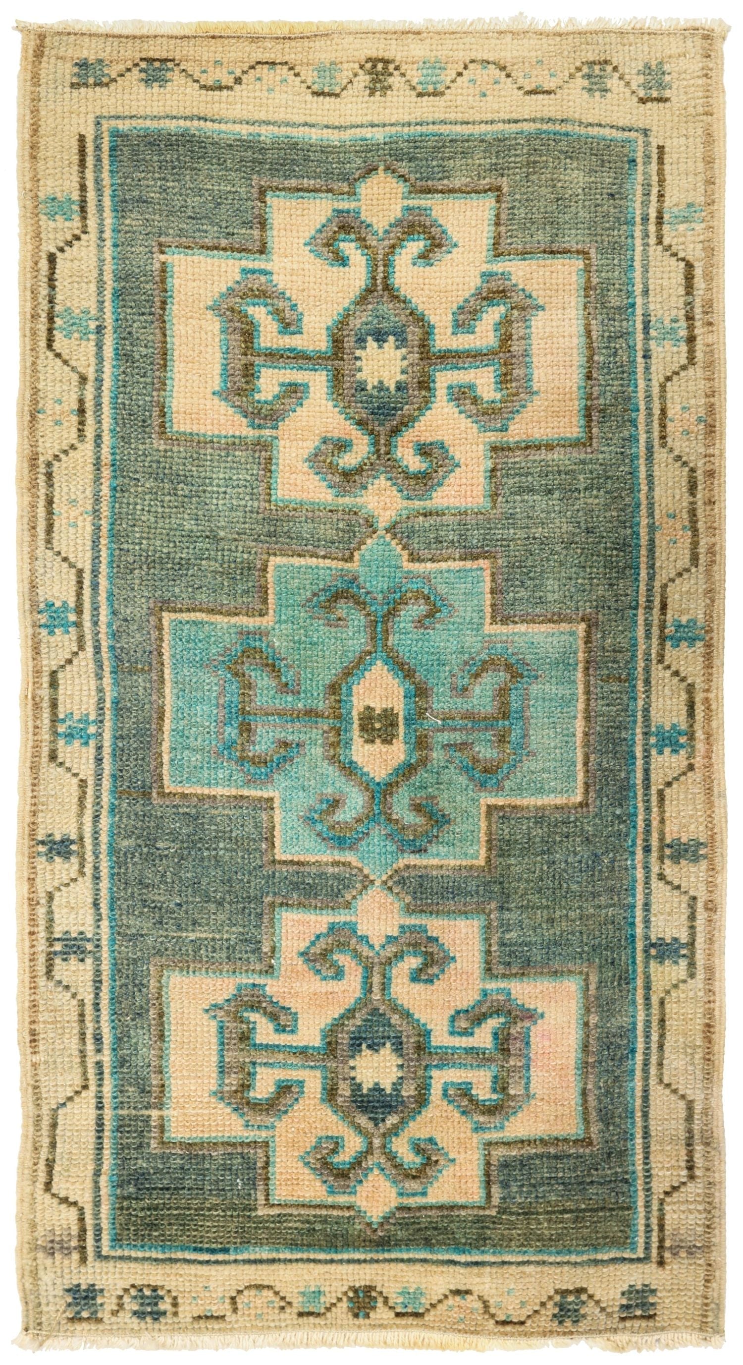 Vintage Tribal Turkish Yastik 1' 7" X 3' 1" Green Rug
